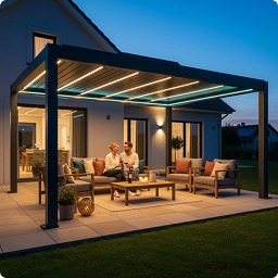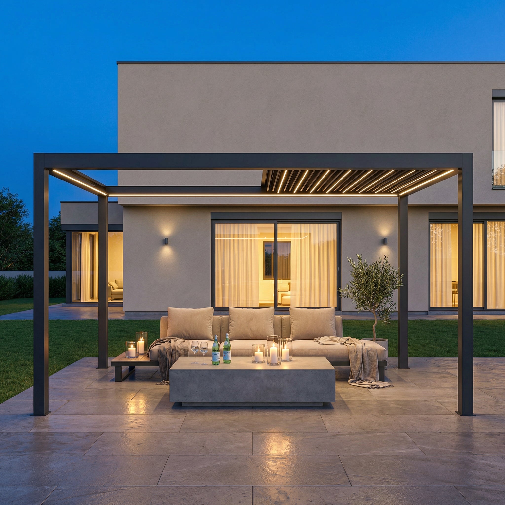 Beste Preis-Leistung SkyMotion LED Pergola ab CHF 4,790.00 Motorisiertes Dach integriert LED Rahmen und Lamellen Mehr erfahren →