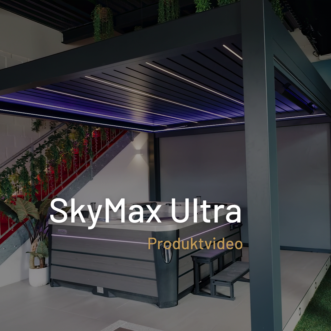 Beste Preis-Leistung SkyMotion LED Pergola ab CHF 3,590.00 Motorisiertes Dach integriert LED Rahmen und Lamellen Mehr erfahren →