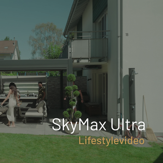 Die SkyMax Ultra Pergola kombiniert höchste Stabilität mit modernem Design und innovativer Technik – für maximalen Komfort im Freien.