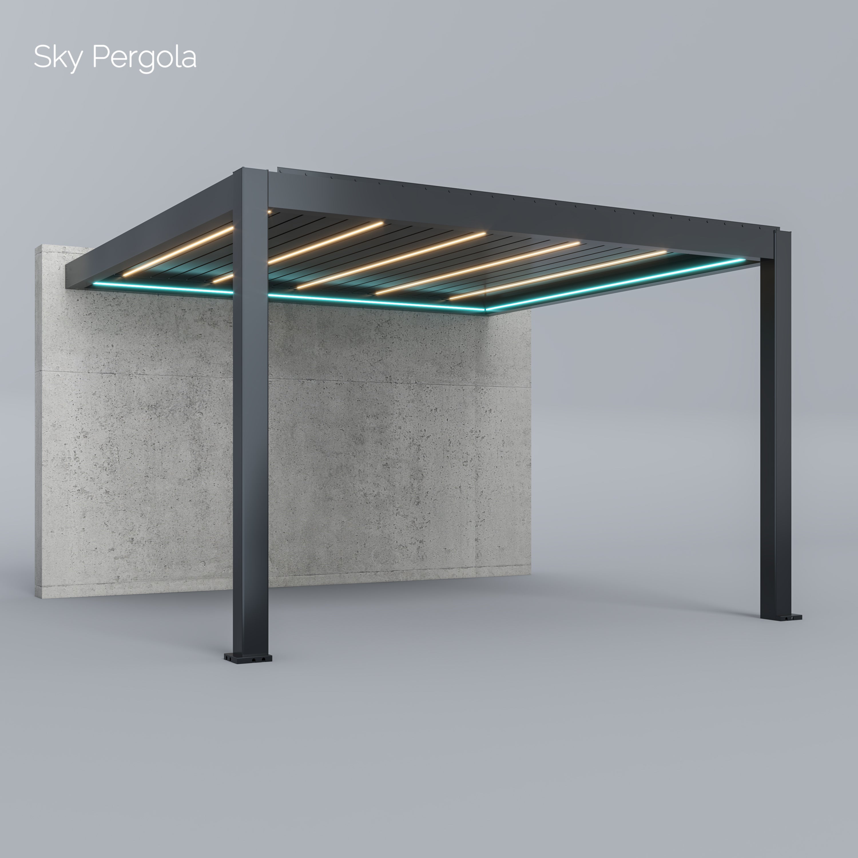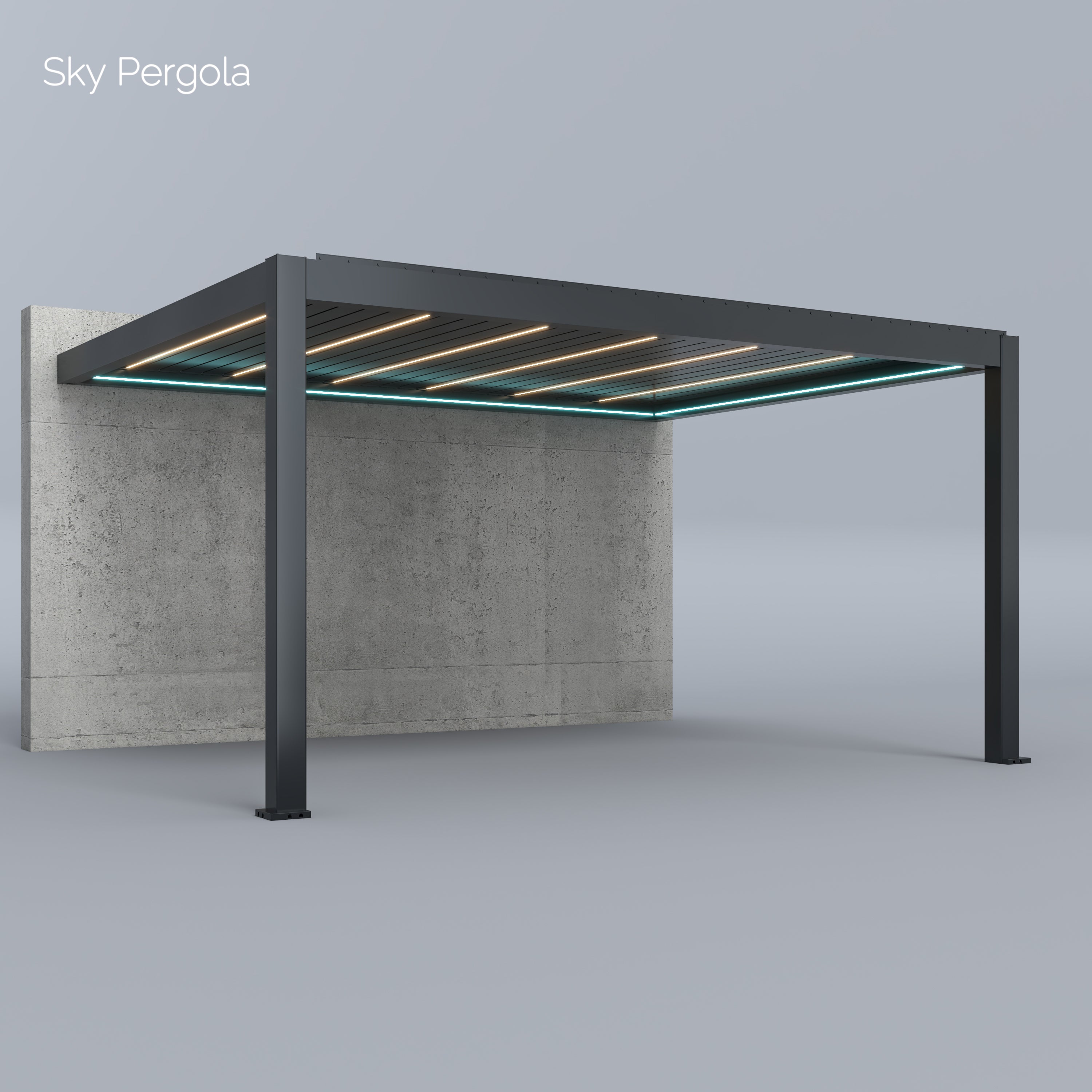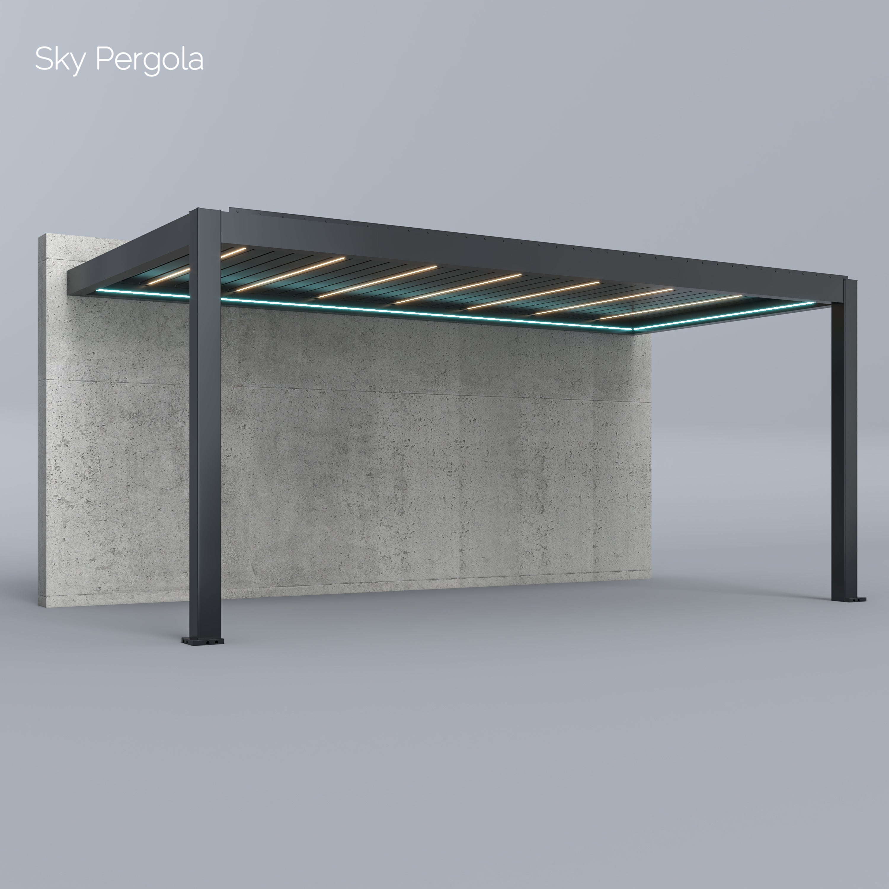Unsere Sky Pergola Modelle bestehen aus rostfreiem, pulverbeschichtetem Aluminium. Dieses hochwertige Material ist absolut wetterfest und benötigt kaum Wartung. Im Gegensatz zu Stahl- oder Holzkonstruktionen kann das Material weder rosten noch verwittern. Die Pergola ist auf eine langlebige Nutzung von über 30 Jahren ausgelegt.