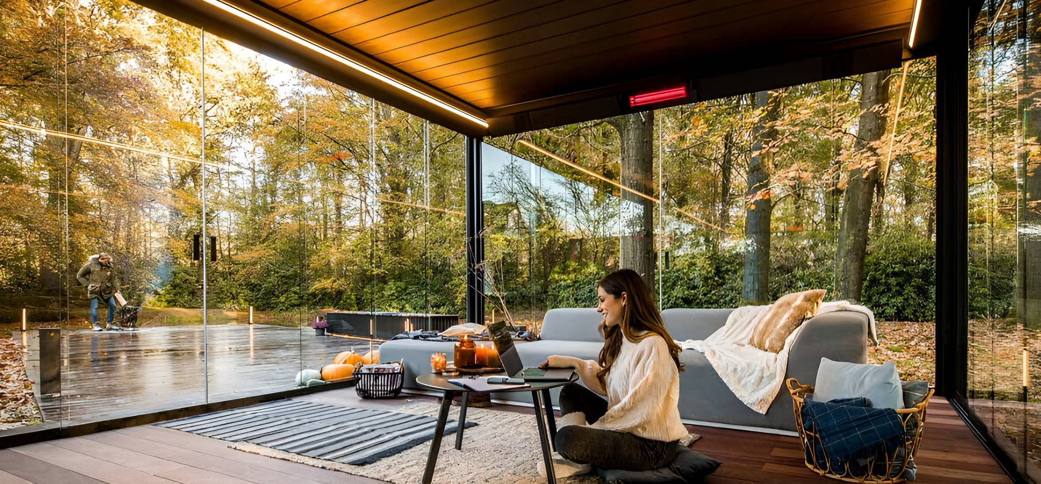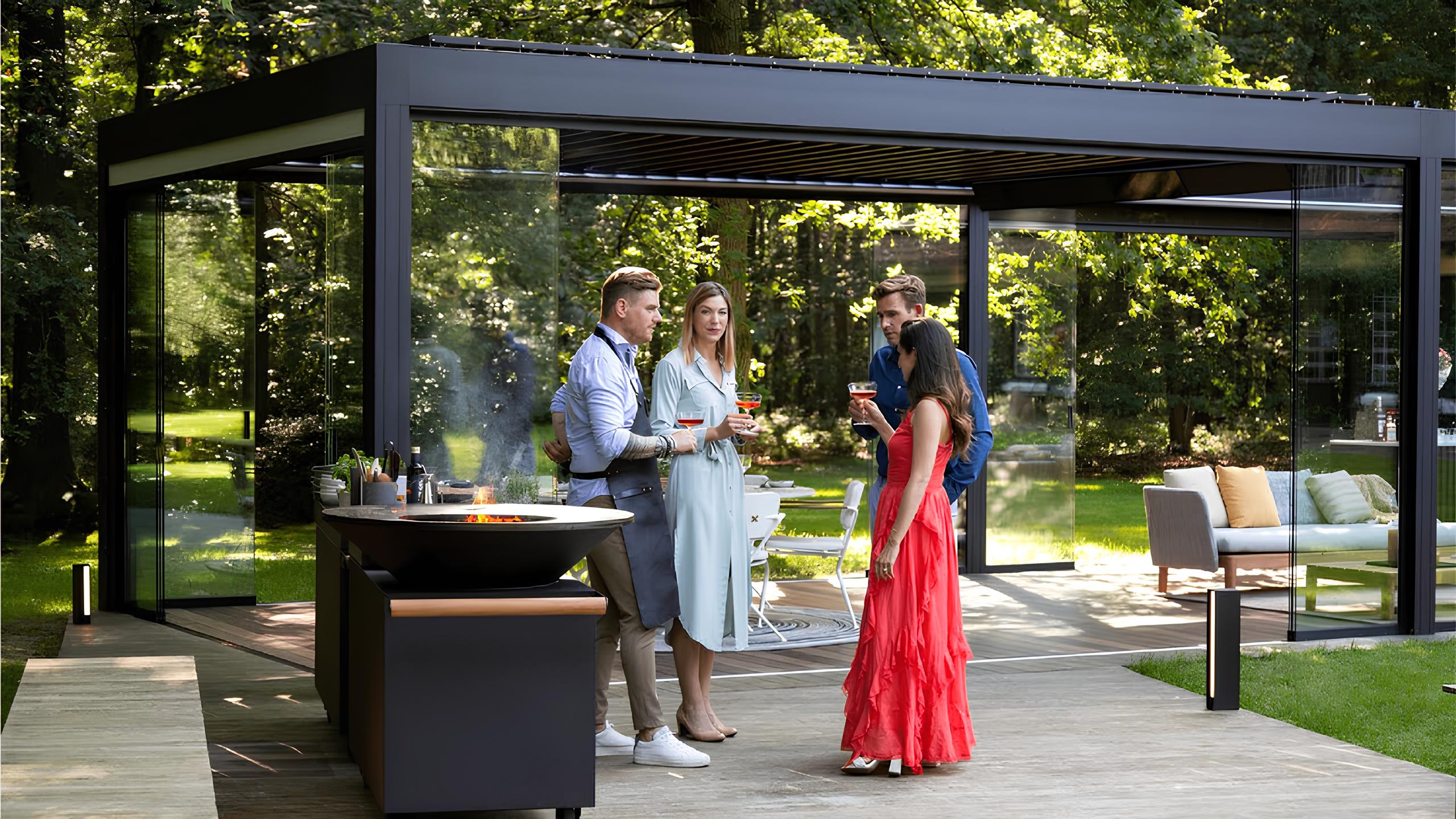 La série ECO permet également d'agrandir la pergola avec des parois latérales, des modules en verre ou à lamelles.
