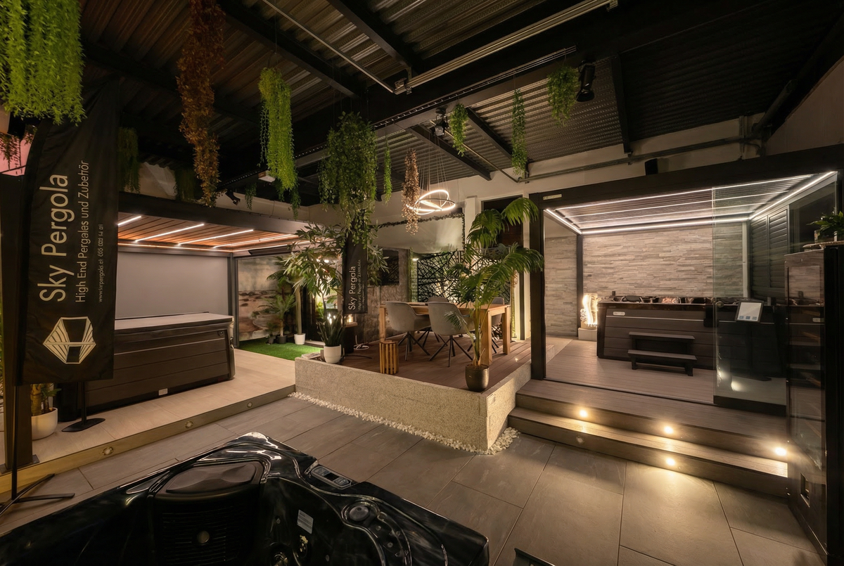 Als führendes Schweizer Unternehmen bieten wir eine breite Auswahl an erstklassigen Pergolen unter unserer eigenen Marke "Sky Pergola". Inspiriert vom bewährten Erfolgskonzept der Spa Solutions, steht Sky Pergola für Qualität, Innovation und ästhetisches Design. Unsere neue Webseite und das engagierte Team setzen diese Erfolgsgeschichte fort, um Ihnen das bestmögliche Pergola-Erlebnis zu bieten. Kontaktieren Sie uns noch heute und verwirklichen Sie Ihren persönlichen Rückzugsort im Freien mit einer Sky Pergola.